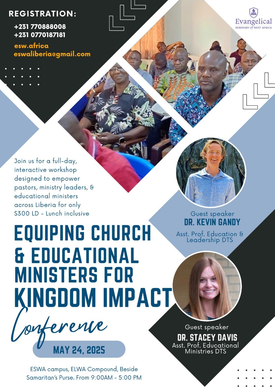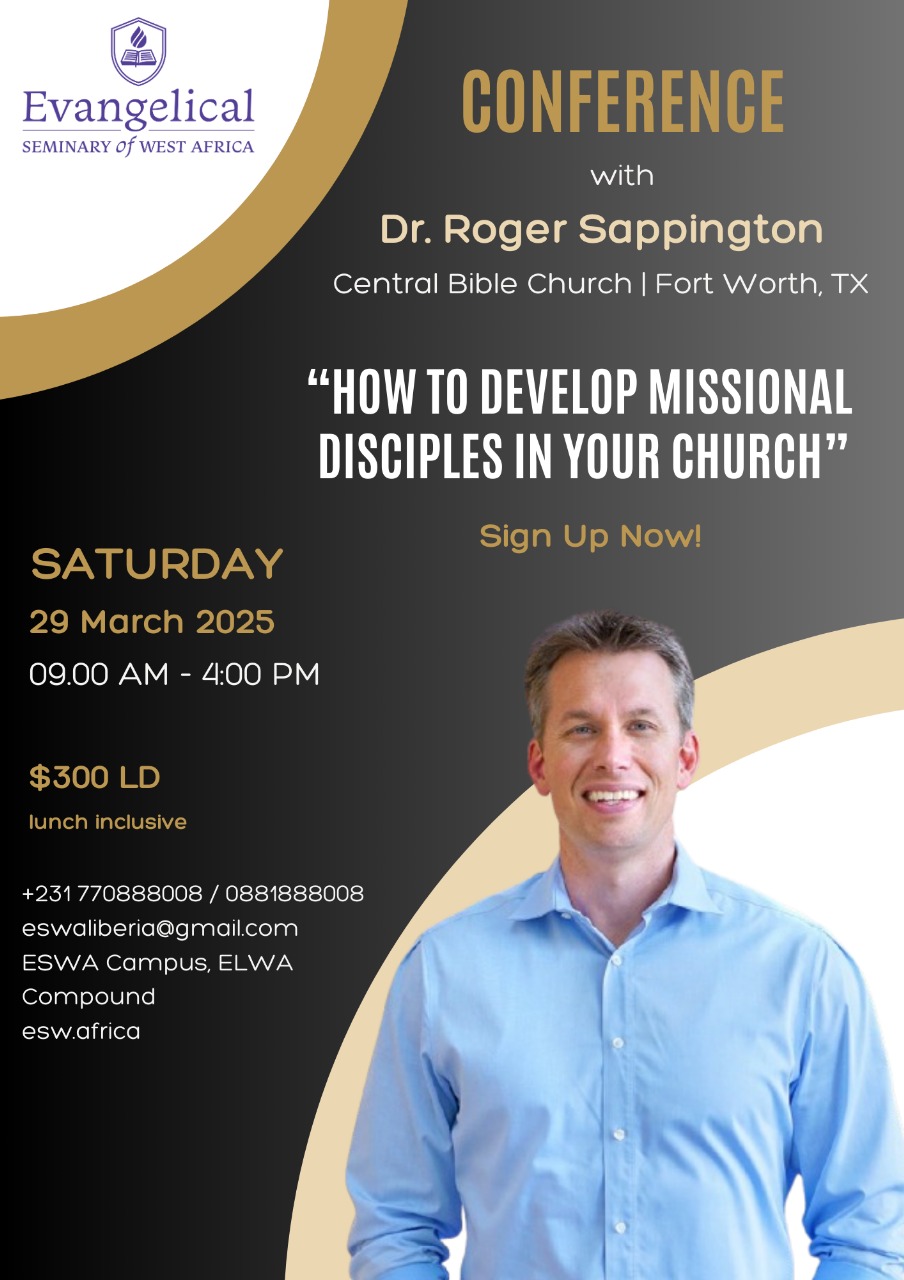 The Evangelical Seminary of West Africa (ESWA) invites you to an important one-day conference, “Developing Missional Disciples in Your Church,” on Saturday, March 29, 2025, from 9 am to 4 pm at the seminary campus, at ELWA Compound.